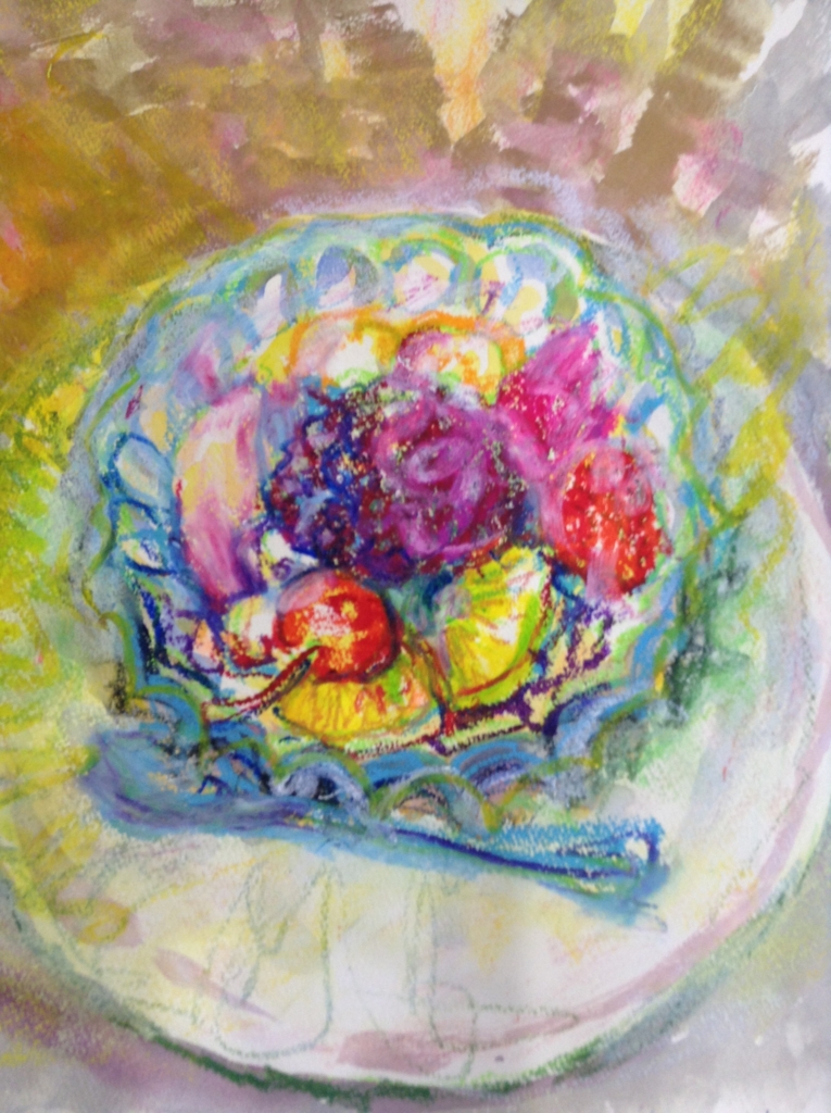 2016-10-12 あんみつ G-Artist-Salon お絵描き アート 油絵、デッサン、水彩 第二水曜はみんなでお絵描き遊アート、自分が食べたあんみつを描いた生徒さん「ふつうにおいしかった」とのこと‥あああ〜あんみつ食べたい〜(~_~;)